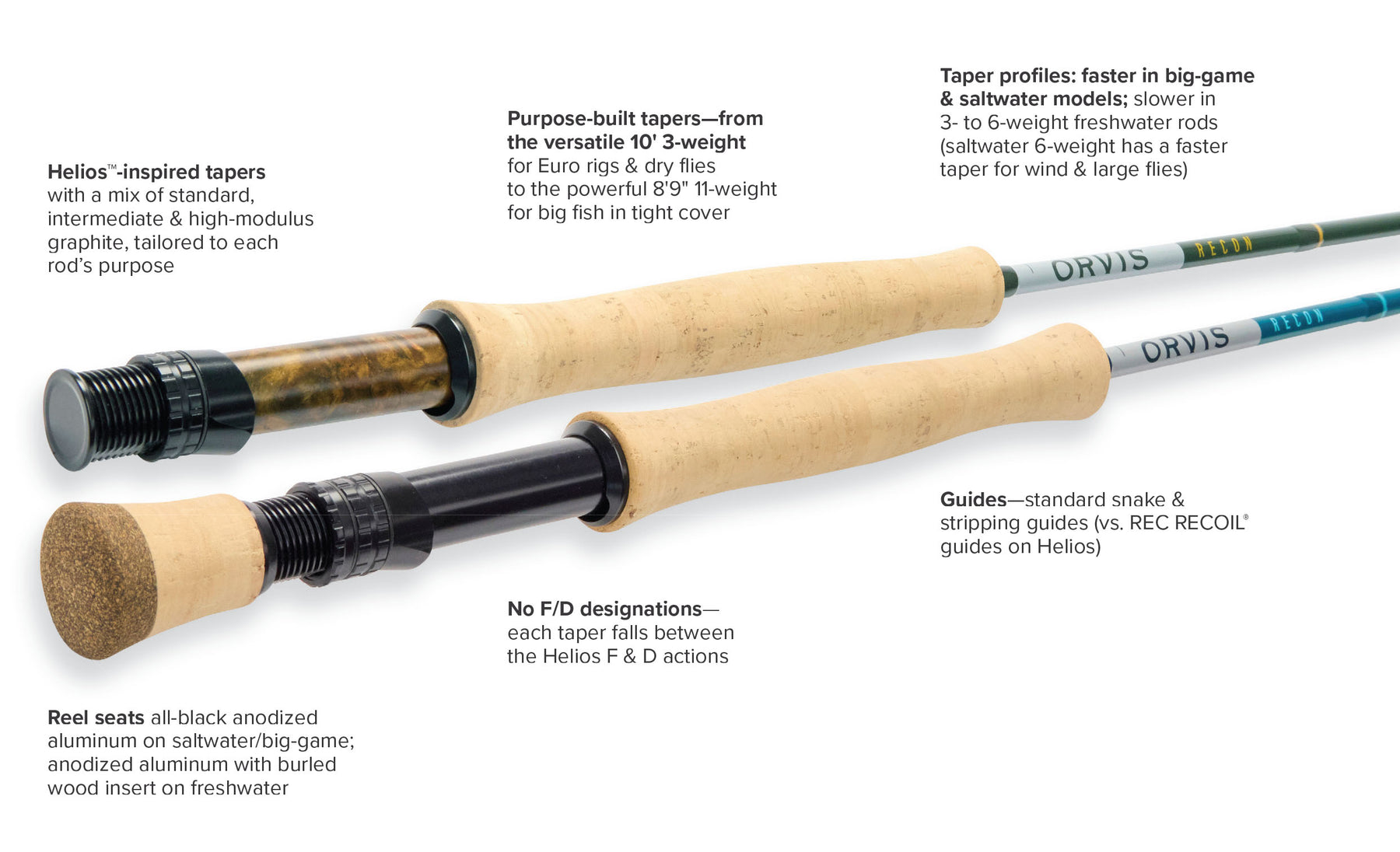 Recon is the rod designed for the anglers who chase blue lines on topo maps and spend their nights bent over maps, plotting the next day’s adventures. For those who manage riverside meals of granola bars and jerky paired with the evening hatch instead of a sit-down meal at a sane hour. For anglers who would rather spend the day in the front of a skiff than behind a desk, we’ve created a rod ready to work as hard as you do in the pursuit of fish. Recon teams high-performance feel with lightness in hand. With close-in loading ability and the power for longer reach, the rods feature a modern shadow green blank and covert black nickel hardware.